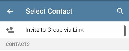 برای ساختن لینک گروه در تلگرام، مدیر گروه وقتی Add member را انتخاب می کند، در قسمت بالای مخاطبین خود، این قسمت را می بیند.
