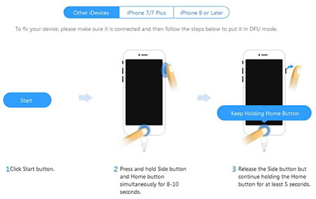 3- کلید کناری را رها کنید اما کلید Home را برای 5 ثانیه دیگر نگه دارید.